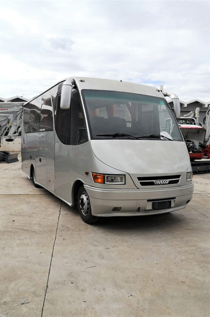 EURO 3 – ABS – CAMBIO MANUALE – ALLESTIMENTO TURISMO JOLLY BUS – COLORE GRIGIO CHIARO METALLIZZATO – INTERNI FANTASIA ARANCIO SU SFONDO BLU – ARIA CONDIZIONATA – PORTA ELETTRICA ROTOTRASLANTE – LUNGH. 6,90 mt – KM